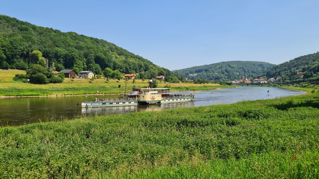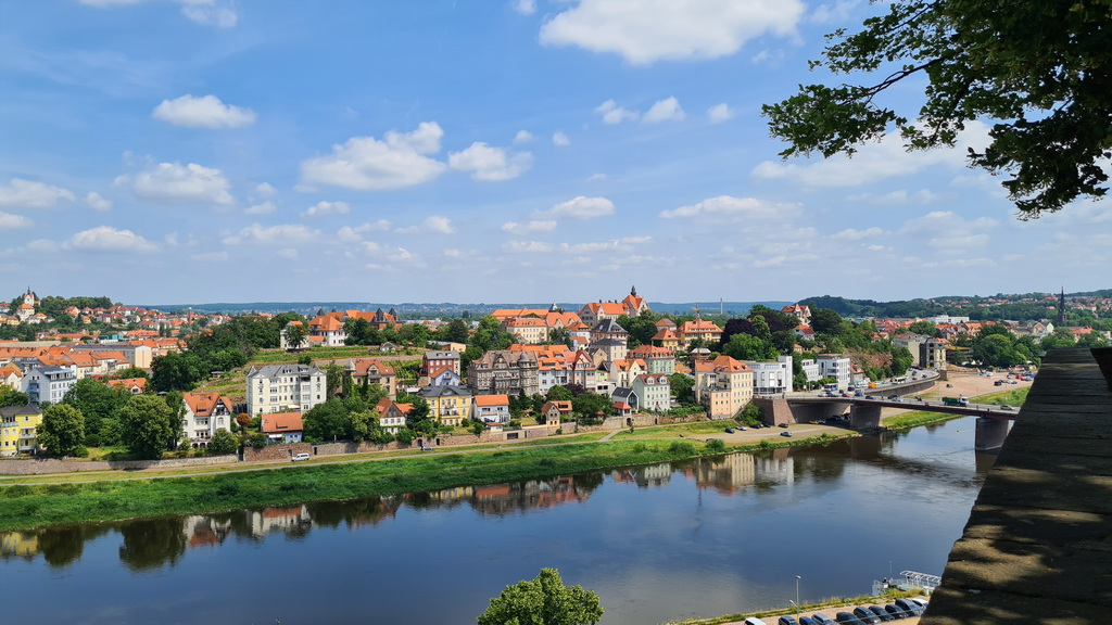 Am ersten Tag ging es ab Startpunkt Loschwitz entlang am Elberadweg in Richtung Festung Königsstein über Pillnitz und Pirna. Der Elberadweg ist sehr gut ausgbaut, nur die ersten paar Kilometer von Dresden nach Pillnitz muss normalerweise an der Sächschischen Weinstraße entlang gefahren werden. Da ich grundsätzlich mit dem Mountainbike auch meine Straßentouren unternehme, gab es jedoch Möglichkeiten, direkt an der Elbe nach Pillnitz mit dem Fahrrad entlang zu fahren. Die Wege sind eben nicht so befestigt bzw. muss man die Kopfsteinpflasterwege in Kauf nehmen. Die Aussicht auf die Elbe und auf die zahlreichen Cafés entschädigen dafür.