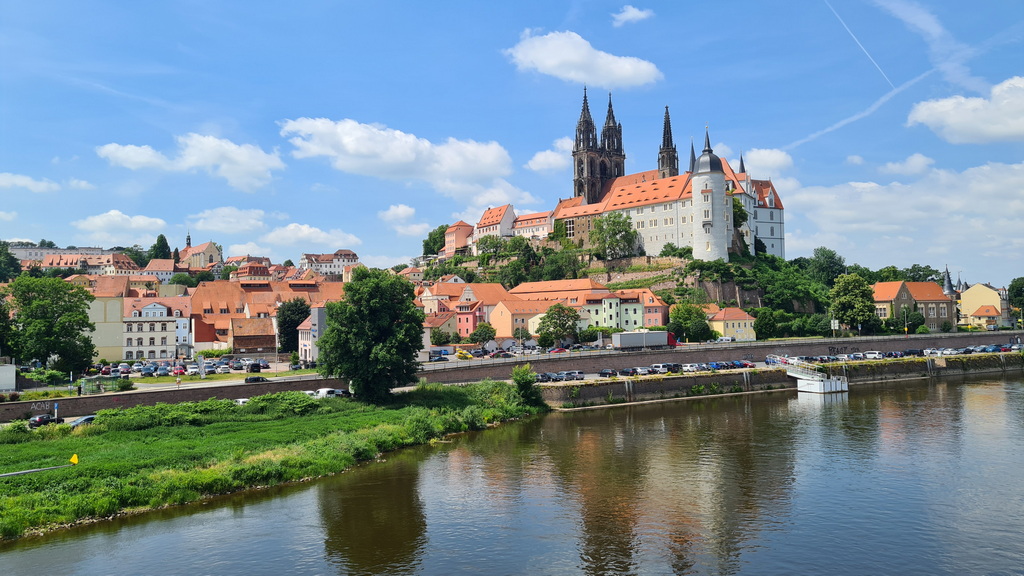 Am zweiten Tag lief es in die andere Richtung nach Meißen. Die Elbe ist hier mindestens genauso schön. Ich war vor allem am rechten Elbeufer entlag gefahren. An dem Tag sollte es sehr warm werden. Die Badeklamotten habe ich gleich beim Start im Gepäck gehabt, welches sich als gute Entscheidung erweisen sollte. Zuerst ging es wieder von Dresden los und dann zunächst nach Coswig an den Badesee. Neben dem Badesee gibt es auch ein Freibad, welches speziell für Familien auch sehr gut geeignet ist und daher ist dort ein kleiner Eintritt pro Person zu entrichten. Der Badesee liegt ebenfalls direkt an der Elbe und ist damit eigentlich nicht zu verfehlen, wenn man direkt an der Elbe entlang fährt. Nach einer kleinen Abkühlung am See ging es dann die restliche nrund 8 Kilometer nach Meißen. Die Stadt Meißen gefiel mir von allen Städten, die ich in der Woche in Sachsen gesehen habe, am Schönsten, obwohl Dresden für eine deutsche Großstadt überdurchschnittlich schön ist. Speziell die Altstadt rund um die Albrechtsburg ist hier das Highlight von Meißen.