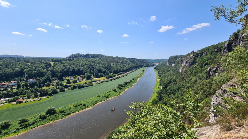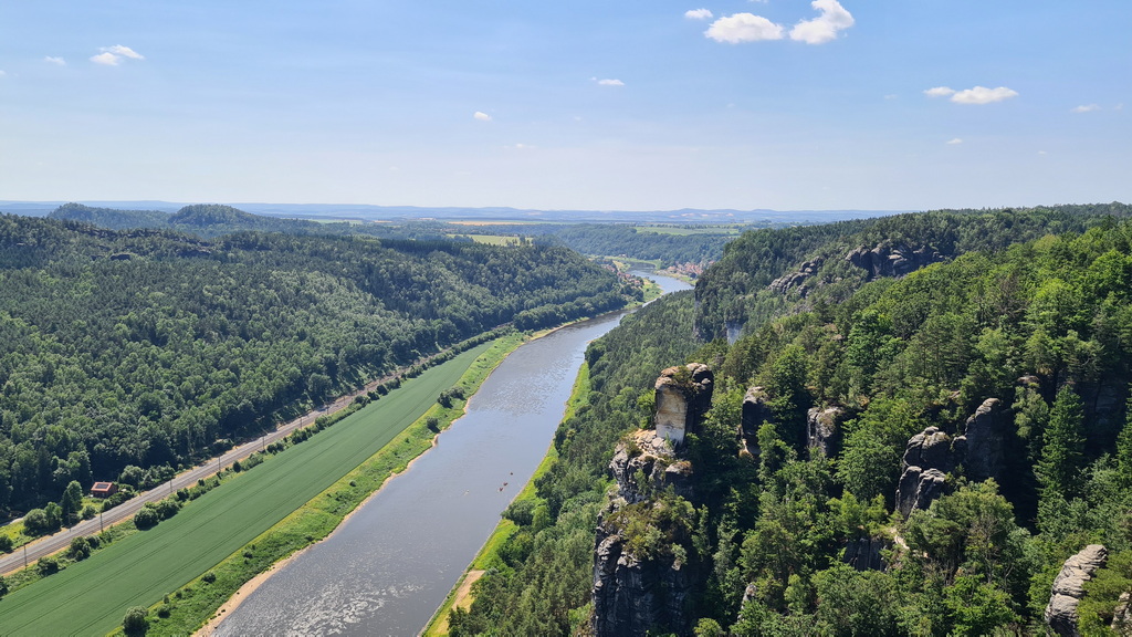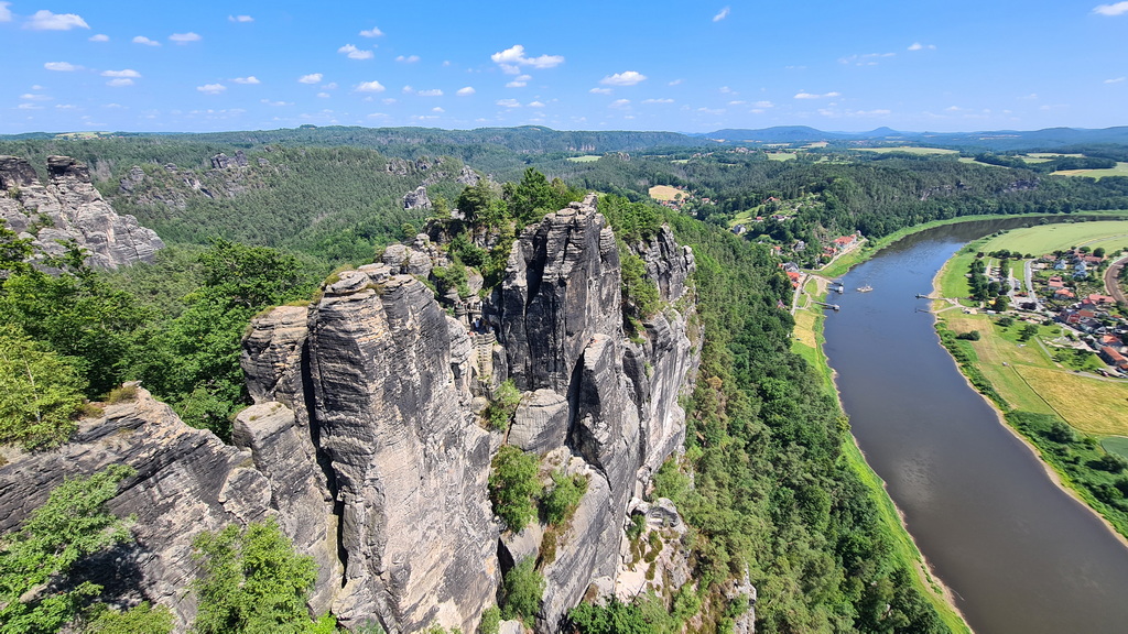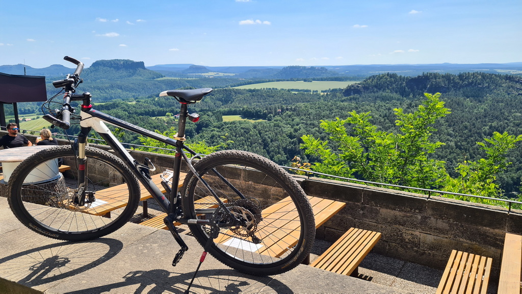 Am dritten Tag war ich gespannt auf den Ausblick von der berühmten Bastei über das Elbetal. Los ging es diesmal nicht von DResden aus, sondern von Pirna und dann zunächst am Elberadweg nach Rathen. In Rathen konnte man mit der Elbfähre aufs andere Ufer übersetzen. Ich dachte eigentlich das man von Rathen direkt mit dem Fahrrad zur Basteibrücke hochfahren kann - weit gefehlt! Ok, zur allgemeinen Belustigung oder manchmal zum Erstaunen der vielen Besucher, welche die 750 von oder zur Basteibrücke gelaufen sind habe ich dann mein Fahrrad auf der Schulter dann diese ganzen Stufen hochgetragen.😅 Das war, trotz das der Weg im Wald verlief, eine ziemlich schweißtreibende Angelegenheit. Gut, oben angekommen wurde man aber mit fantastischen Ausblicken über das Elbetal belohnt. Als Tipp für Radfahrer, welche zur Bastei möchten lieber über die Stadt Wehlen den Waldradweg hinauf fahren. Der Radweg ist wirklich toll, man fährt praktisch "durch" die großen Sandsteinfelsen hindurch nach oben. Nach der Bastei ging es dann herunter zur Stadt Wehlen, erst nach Bad Schandau und nochmal hoch zum Lilienstein, welcher ebenfalls eine fantastische Aussicht bietet. Nach den in Summe rund 480 Höhenmetern ging es dann zuguterletzt wieder zurück nach Pirna, wo ich gestartet war.